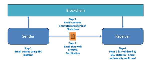 Installed as an Add-In to Microsoft Outlook, using a combination of traditional S/MIME based security and our proprietary blockchain technology software we allow firms to ensure the confidentiality, integrity and authenticity of email communications